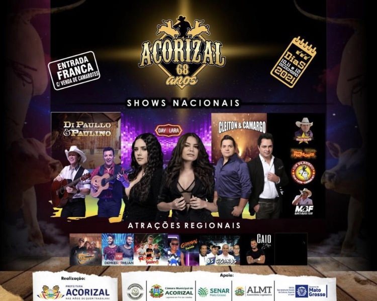 Festa com rodeio, Di Paullo & Paulino, Day & Lara, Cleiton & Camargo e outros artistas marca comemoração de 68 anos de Acorizal Para comemorar os...