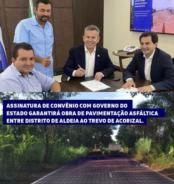 CONVÊNIO ENTRE GOVERNO DO ESTADO E PREFEITURA MUNICIPAL, TORNARÁ REALIDADE O ASFALTO ENTRE O DISTRITO DE ALDEIA AO CENTRO DA CIDADE DE ACORIZAL. O Prefeito Diego...