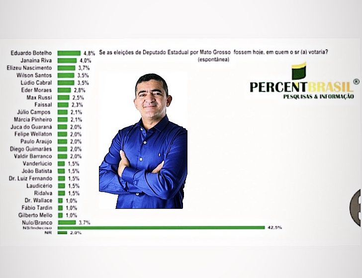 A Percent aplicou 800 entrevistas presenciais entre os dias 27 de junho e 1º de julho em 13 cidades da Baixada Cuiabana. A margem de erro é de...