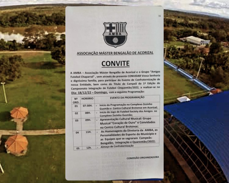 A Associação Master Bengalão de Acorizal- AMBA realizará amanhã (18/12) um quadrangular de futebol Society no Zezinho Gusmão para encerrar o ano de 2022 em grande...