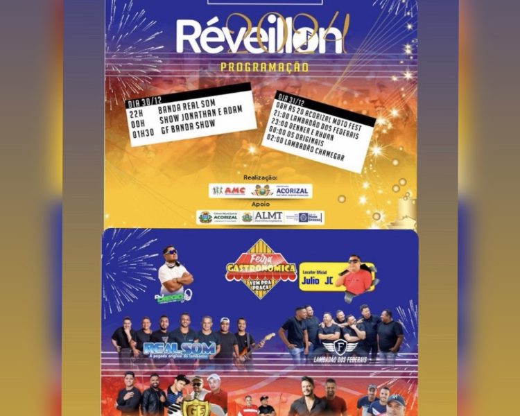 A Prefeitura de Acorizal organizou o réveillon para lá de especial nos dia 30 e 31 aos munícipes e visitantes. A festividade contará com bandas renomadas...