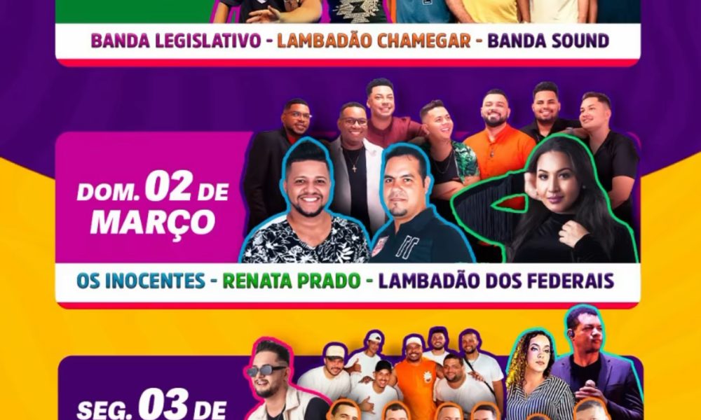 A Prefeitura de Acorizal divulgou a pouco as atrações musicais para o AcoriFolia 2025. 01/Março – Banda Legislativo / Lambadão Chamegar e Banda Sound 02/Março –...