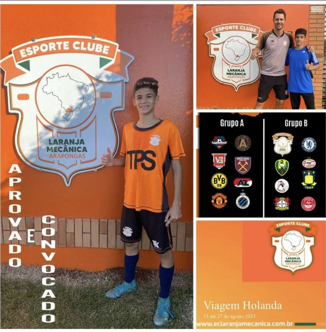 Uma oportunidade de ouro surgiu na vida do pequeno meio atacante Arthur Vieira Arruda, de 12 anos, que após um campeonato em Junho deste ano, foi selecionado para integrar o time Laranja Mecânica do Paraná e convidado para jogar um Campeonato na Holanda representando o time do Sul do país.