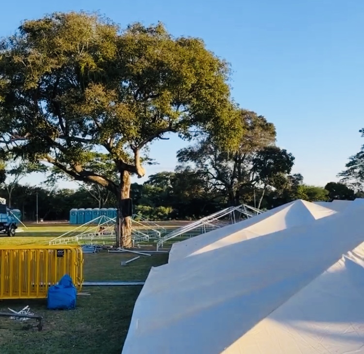 Estrutura MonteNegro Produções chega em Acorizal para o Fespescal 2023