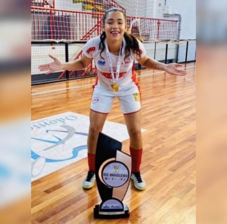 A atleta Kallyne Bruno Monteiro de apenas 16 anos, vem fazendo bonito nas quadras e nos gramados jogando pela Associação Desportiva 3R da cidade de Joinville (SC).