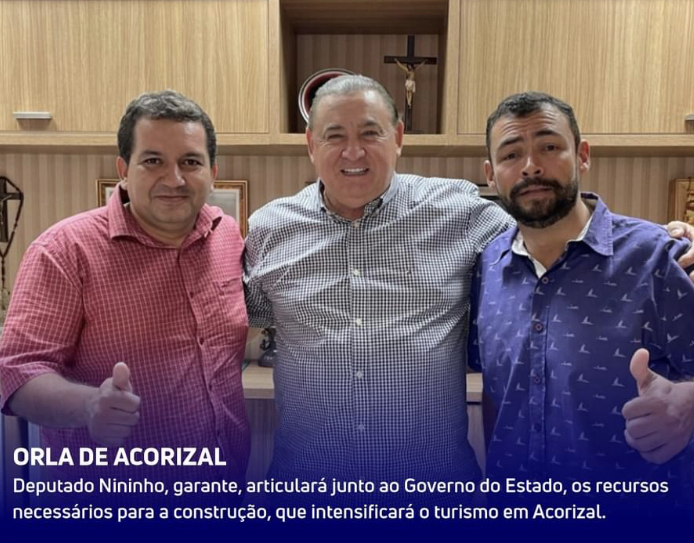Hoje (7) o prefeito Diego Taques (PSD) e o vice-prefeito Wbiracy Santos Vilela, estiveram no gabinete do Deputado Ondanir Bortolini (PSD) o “Nininho” para apresentar o projeto da orla de Acorizal.