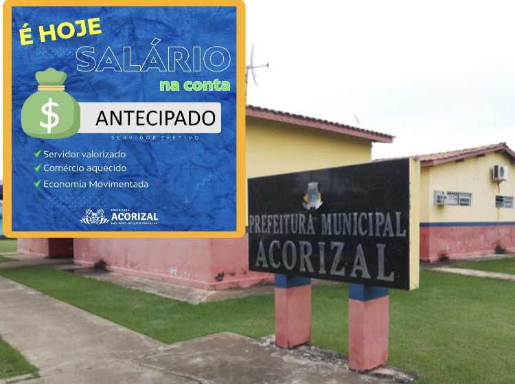 A Prefeitura de Acorizal acaba de emitir nota oficial comunicando a antecipação do pagamento dos salários aos servidores municipais efetivos para hoje (27). A intenção é aquecer a economia local, o comércio e principalmente a valorização dos servidores que estão juntos para uma Acorizal pujante.