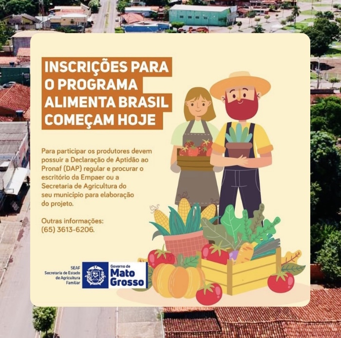 As inscrições para participar do Programa Alimenta Brasil (PAB) começaram hoje. O prazo segue até o dia 30/06 e conta com a intermediação da Empaer ou prefeitura.