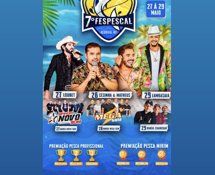 A Prefeitura de Acorizal, por meio da Secretária de Cultura e Turismo divulgou a pouco o cartaz com às programações do 7.º Fespescal da cidade que...