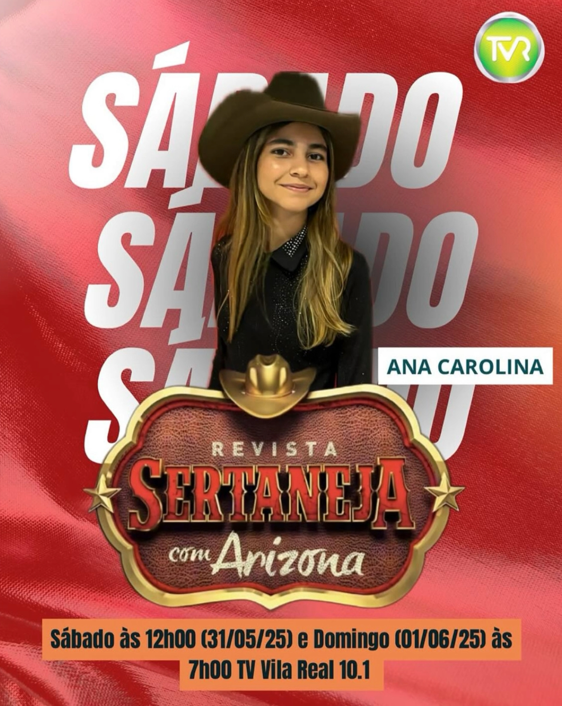 A violeira mirim de Acorizal Ana Carolina fará uma apresentação especial na TV Vila Real, mais precisamente no programa Revista Sertaneja do apresentador Arizona neste sábado (31) às 12h da manhã e também no domingo às 7h.